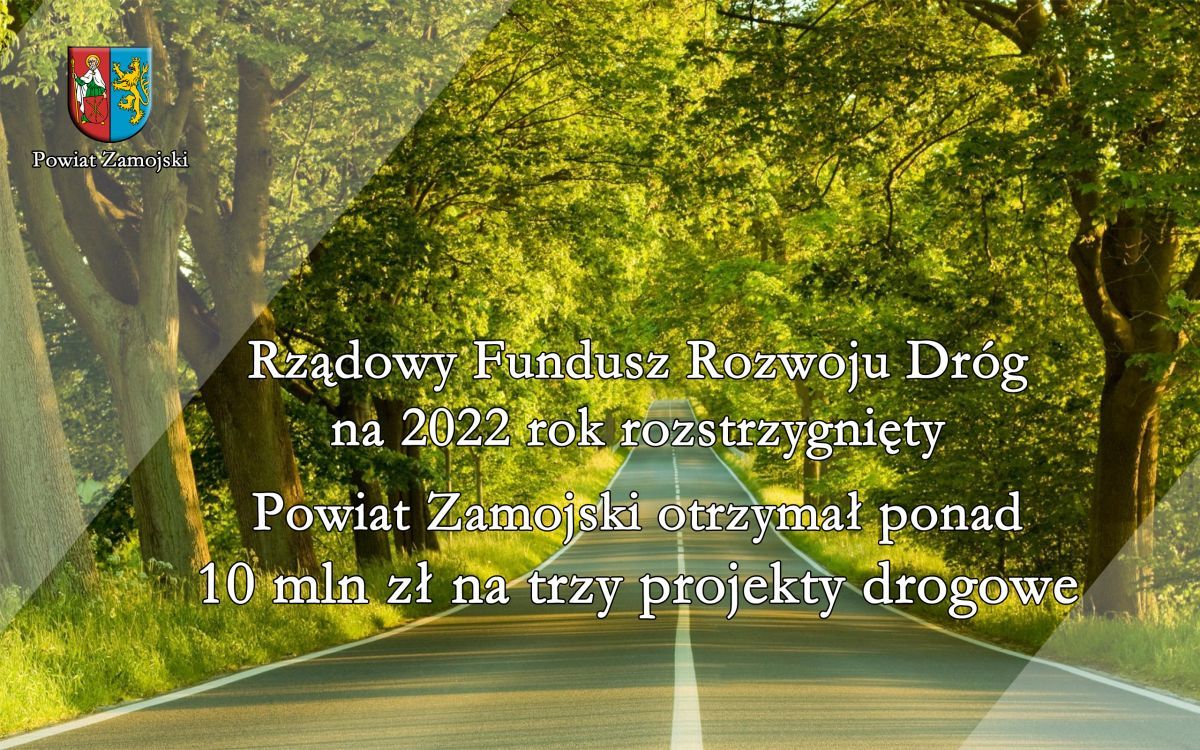 Powiat Zamość: Powiat Zamojski otrzymał ponad 10 mln zł na trzy projekty drogowe - Rządowy Fundusz Rozwoju Dróg na 2022 rok rozstrzygnięty