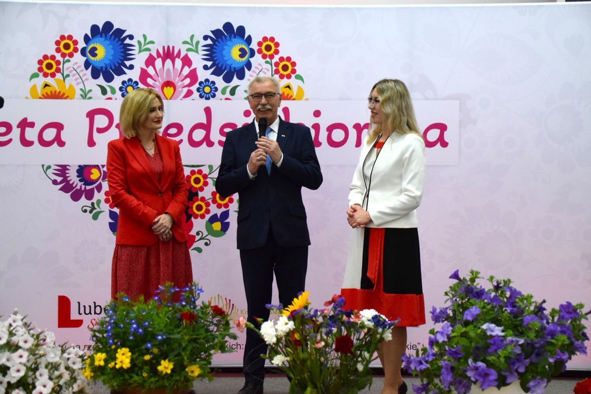 **W sobotę 13 maja w Sali Konferencyjnej Starostwa Powiatowego w Zamościu odbył się pierwszy półfinał konkursu ,,Kobieta Przedsiębiorcza’’, zorganizowany przez Urząd Marszałkowski Województwa Lubelskiego we współpracy z Powiatem Zamojskim. W wydarzeniu udział wzieli Starosta Zamojski Stanisław Grześko, Dyrektor Departamentu Rolnictwa i Rozwoju Obszarów Wiejskich Urzędu Marszałkowskiego w Lublinie Ewa Szałachwiej oraz Dyrektor Wydziału Spraw Społecznych i Promocji Powiatu Joanna Mauzrek.