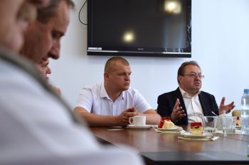 W dniu 26 czerwca, w sali konferencyjnej Starostwa Powiatowego w Zamościu, odbyło się spotkanie Starosty Zamojskiego Stanisława Grześko z delegacją samorządowców z terenu Ukrainy. Ołycką wspólnotę terytorialną reprezentował Oleksandr Mikołajowicz Prendecki przewodniczący ołyckiej wspólnoty terytorialnej wraz ze swoim zastępcą Walentynem Witalijowiczem Pawłowskim, natomiast obwód wołyński reprezentował zastępca przewodniczącego rady obwodowej Grigorij Oleksandrowicz Pustowit. Samorządowcom ukraińskim towarzyszył Dyrektor Kwiercowskiego Parku Narodowego Cumańska Puszcza” Witalij Wołodymirowicz Derkacz oraz Vasyl Baitsym - Prezes Zarządu Fundacji Rozwoju Energetyki Odnawialnej i Ochrony Zdrowia.