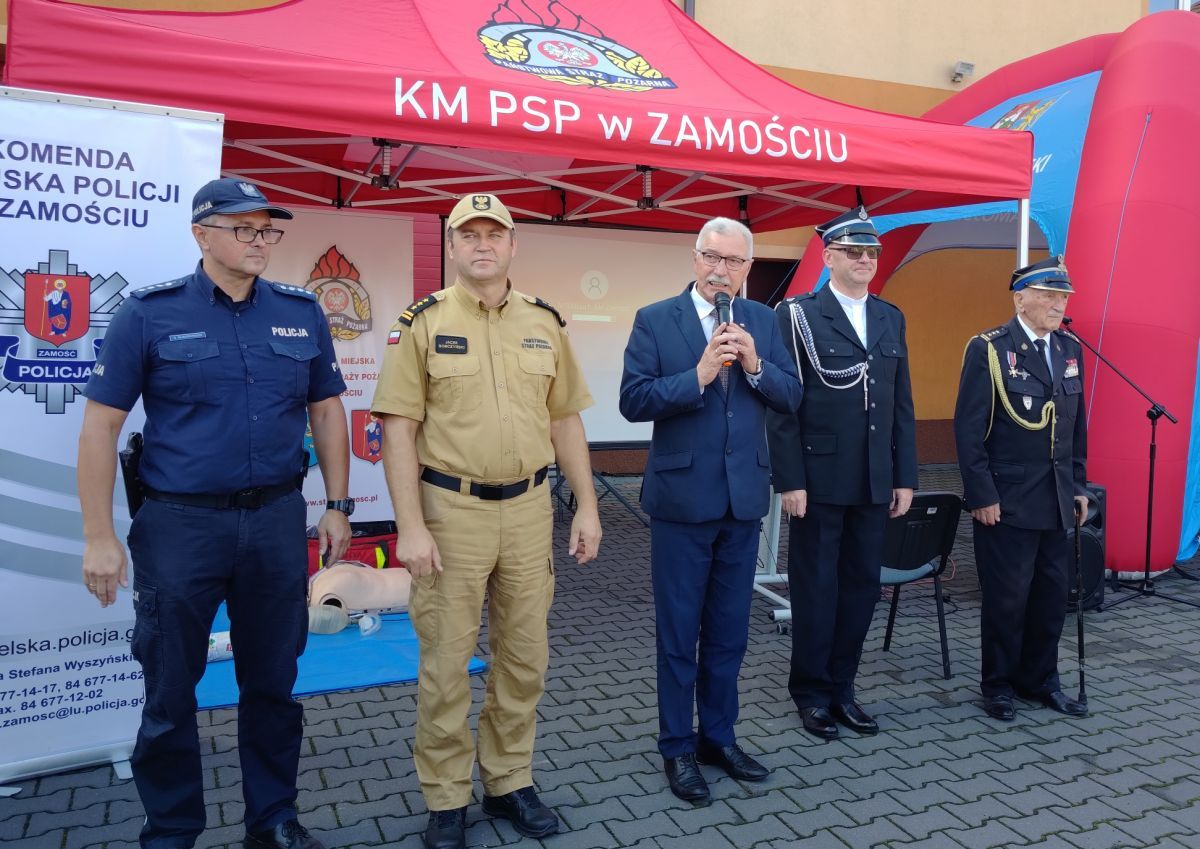 Na placu przed budynkiem KM PSP w Zamościu odbył się dziś (20.09) Powiatowy Dzień Bezpieczeństwa, współorganizowany przez Powiat Zamojski. Uczestników przywitali Starosta Zamojski, Prezes Zarządu Oddziału Powiatowego Związku Ochotniczych Straży Pożarnych w Zamościu Stanisław Grześko oraz Komendant Miejski Państwowej Straży Pożarnej w Zamościu st. bryg. Jacek Sobczyński.