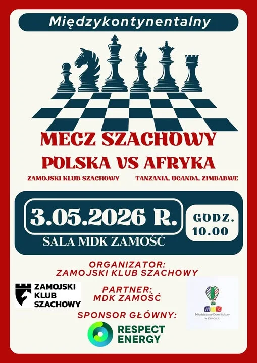 W Zamościu szykuje się naprawdę nietypowe szachowe starcie 3 maja lokalni zawodnicy z Zamojskiego Klubu Szachowego zmierzą się z reprezentacją Afryki, a na sali w Młodzieżowym Domu Kultury zrobi się międzynarodowo, emocjonująco i bardzo kameralnie zarazem. To ten typ wydarzenia, przy którym warto choć na chwilę zajrzeć i poczuć atmosferę dużej partii rozgrywanej na żywo.