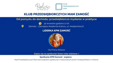 - Organizator: Klub Przedsiębiorczych Mam (projekt realizowany przez Fundację Rodzic w Mieście)